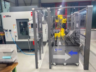 - Beladung der Haas CNC-Maschine durch vorprogrammierten Fanuc-Roboter
